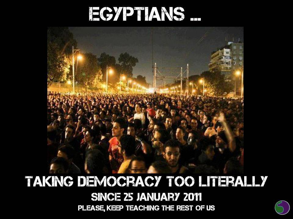 W związku z tym, co dzieje się teraz w Egipcie, Facebook (jak i cała reszta social media) zalany jest opisami, statusami i obrazkami komentującymi aktualną rzeczywistość. Obrazki i komentarze są lepsze i gorsze, mniej lub bardziej udane. Bardzo wielu z nich nie rozumiem, ponieważ wciąż, niestety, nie znam arabskiego (pomimo, że bardzo bym chciała i że cały czas uczę się tego języka).